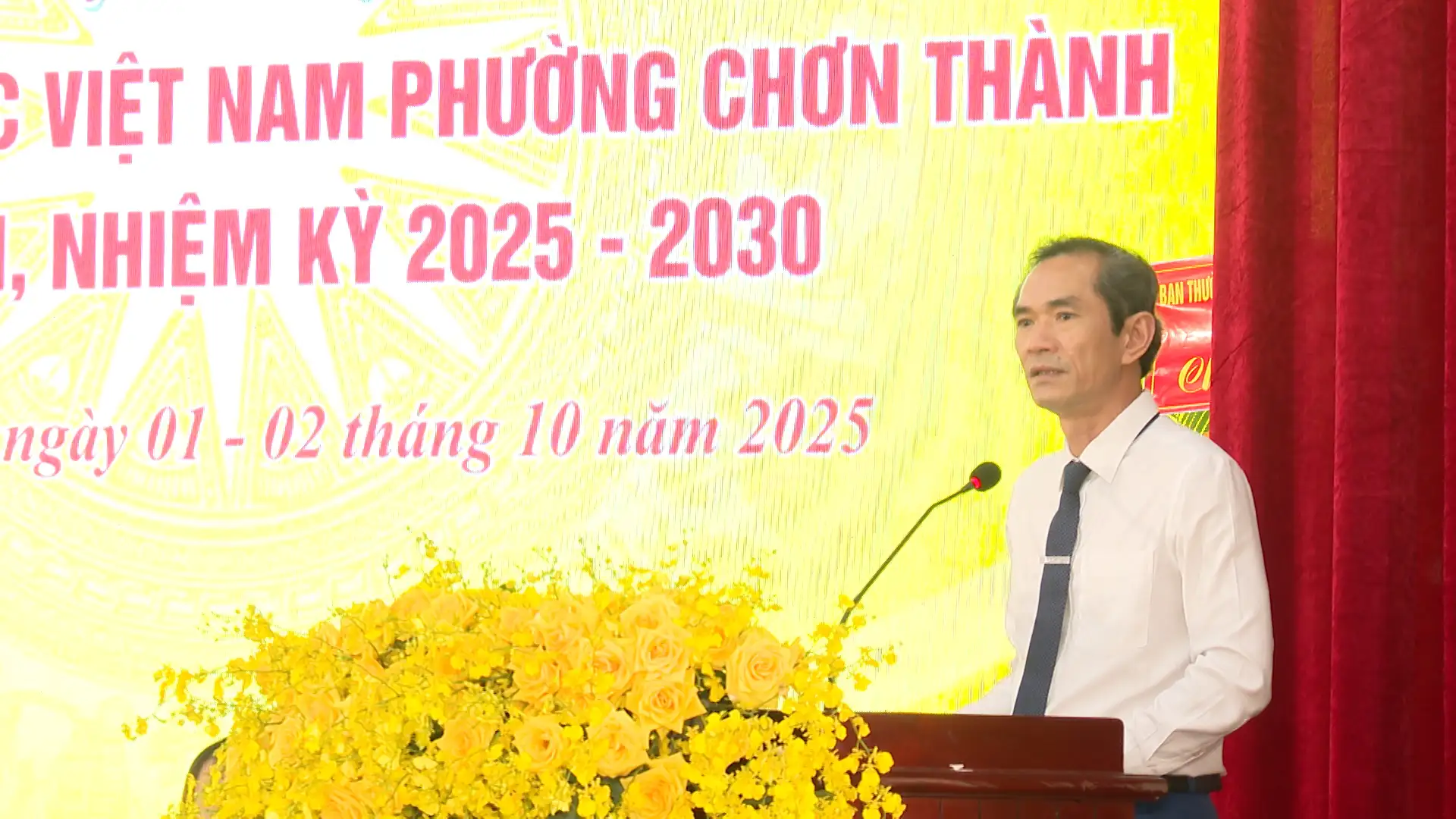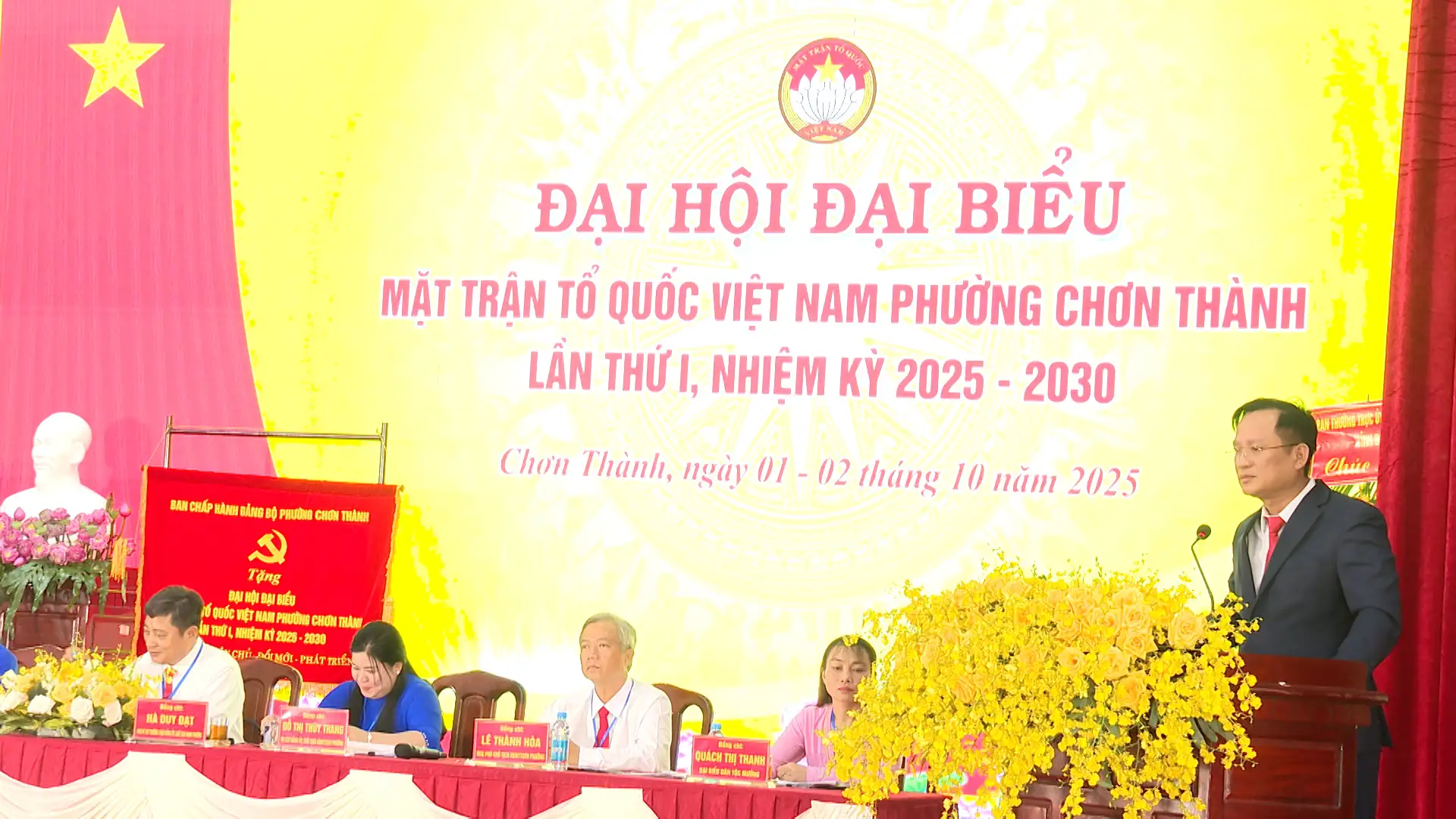 Từ ngày (01đến 2-10-2025), Uỷ ban MTTQ Việt Nam phường Chơn Thành, tỉnh Đồng Nai đã long trọng tổ chức Đại hội Đại biểu lần thứ I, nhiệm kỳ 2025- 2030. Dự có Phó Chủ tịch Ủy ban MTTQ tỉnh Nguyễn Tất Độ; lãnh đạo phường Chơn Thành cùng 160 đại biểu chính thức đại diện cho các tầng lớp nhân dân trên địa bàn phường.