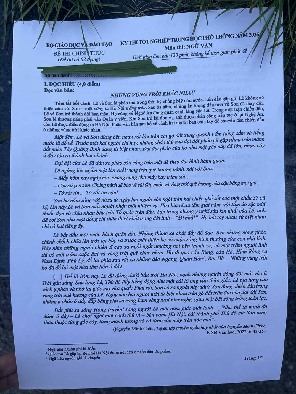 Trong đề thi môn Ngữ văn tốt nghiệp THPT năm nay có Truyện ngắn “Những vùng trời khác nhau” của nhà văn Nguyễn Minh Châu. Ở phần câu hỏi nghị luận, các em từ truyện ngắn trên cùng với những hiểu biết từ bối cảnh đất nước đang có nhiều thay đổi lớn lao, viết thành bài nghị luận chủ đề “vùng trời quê hương nào cũng là bầu trời Tổ quốc”.